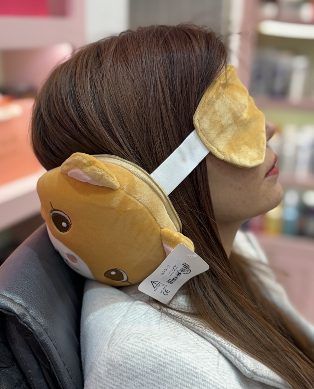 قسمت عروسکی به زیر سر شما میرود و کار بالشت را انجام میدهد و قسمت رویی که چشم بند میباشد روی چشمان شما را میپوشاند.